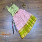 Our exclusive digital printed pure kanjivaram with traditional annam paisley in borders, in brilliant half white and rani combo.